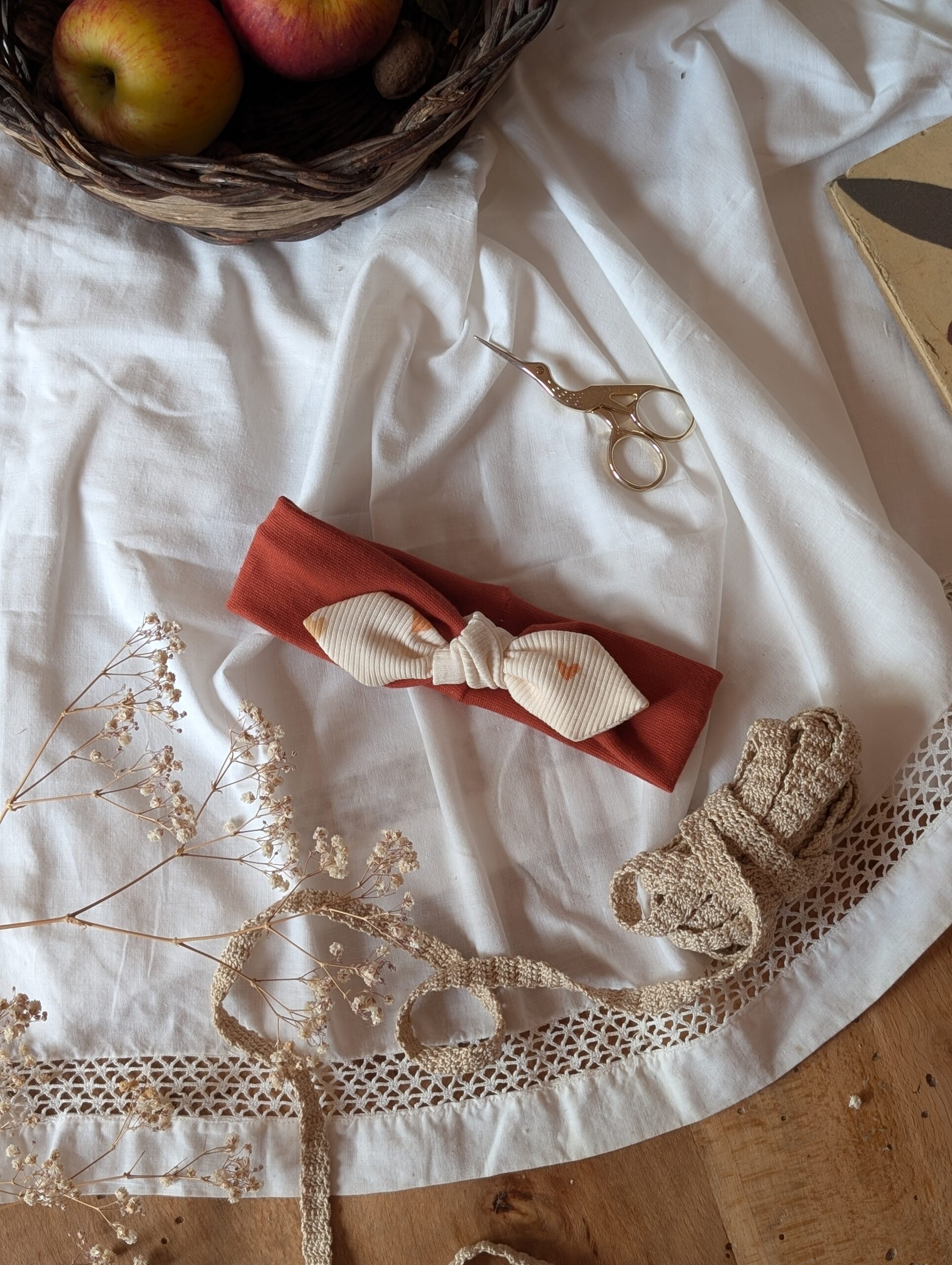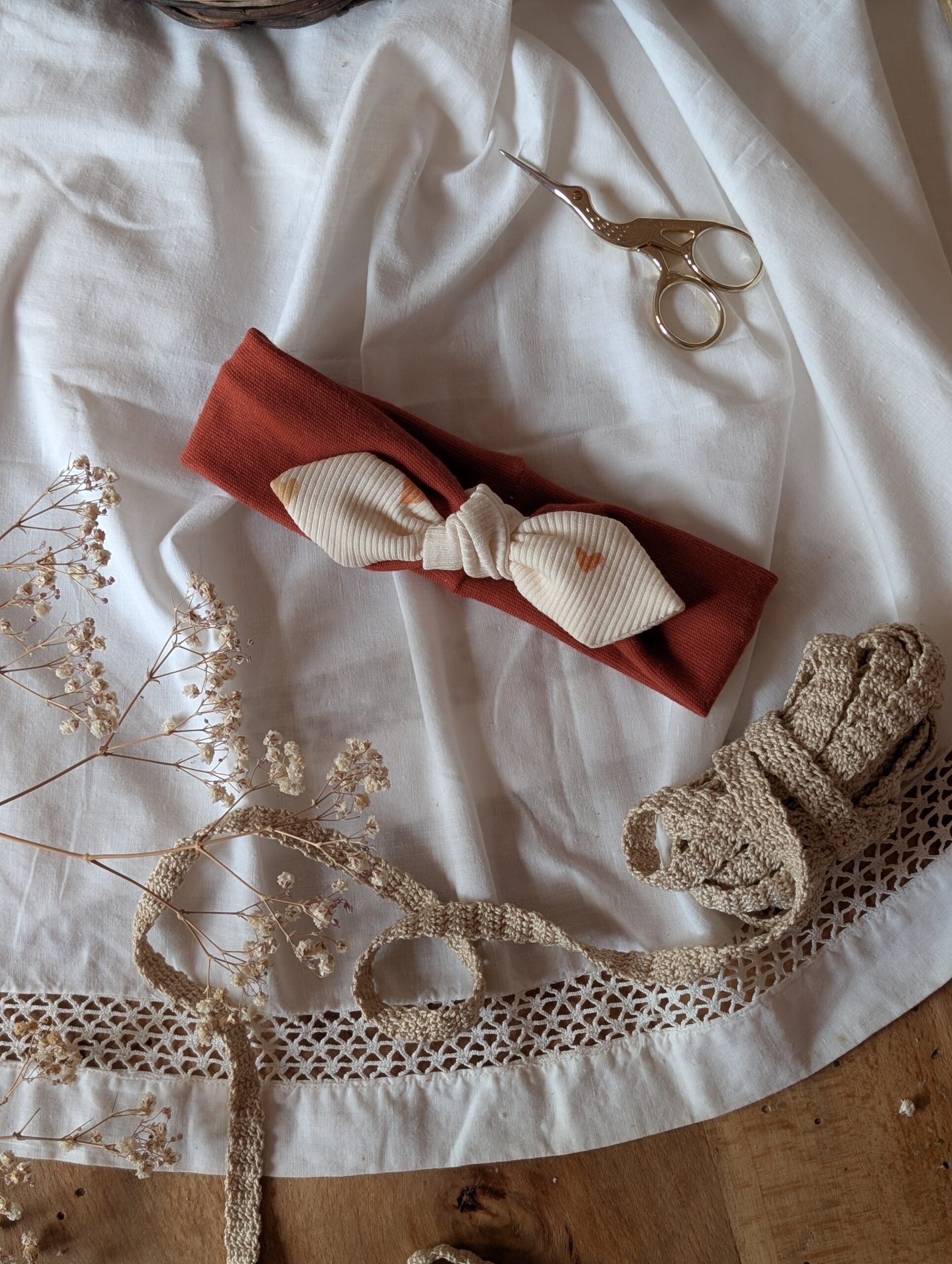 Ce bandeau enfant fait main accompagne les journées à la crèche, les sorties en famille, les vacances ou les séances photo. Il apporte une touche lumineuse à toutes les tenues.