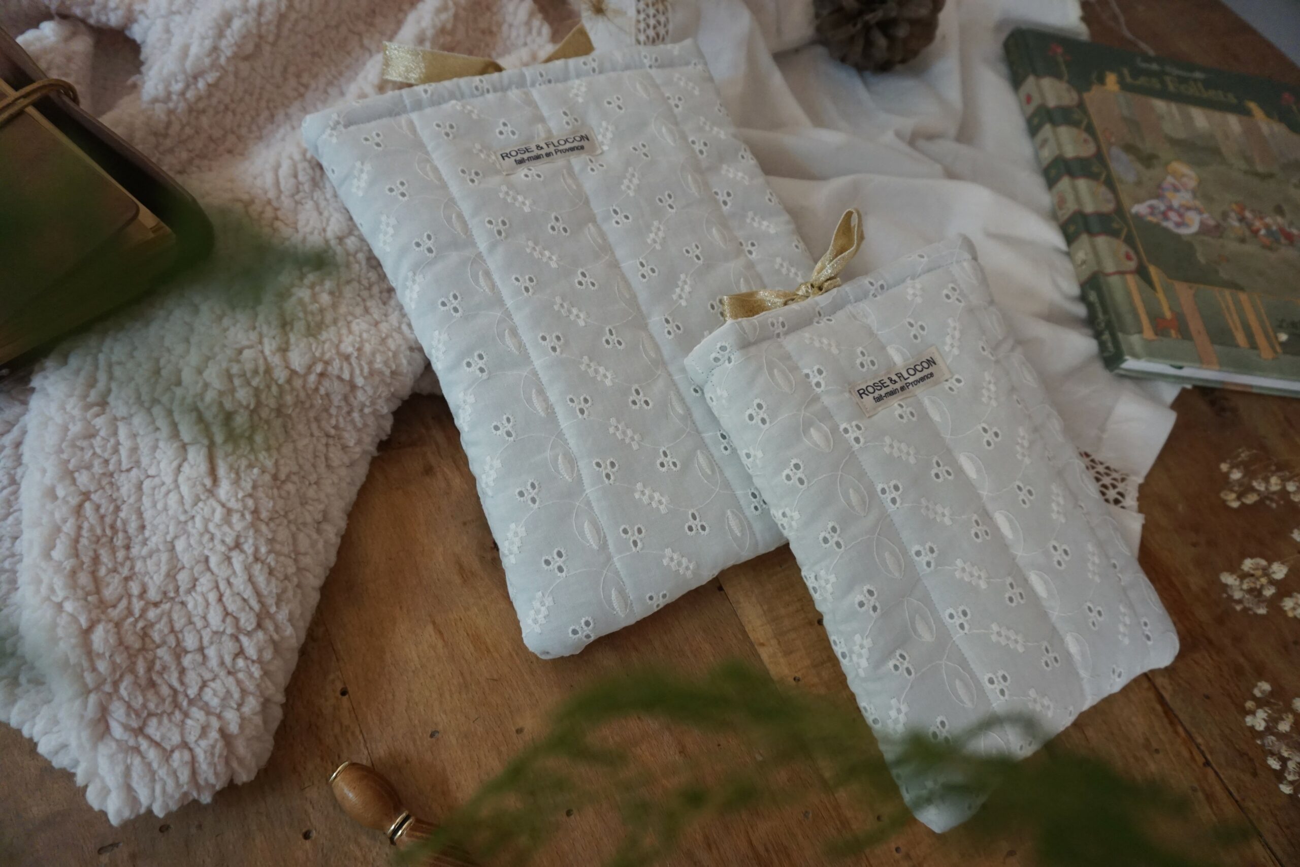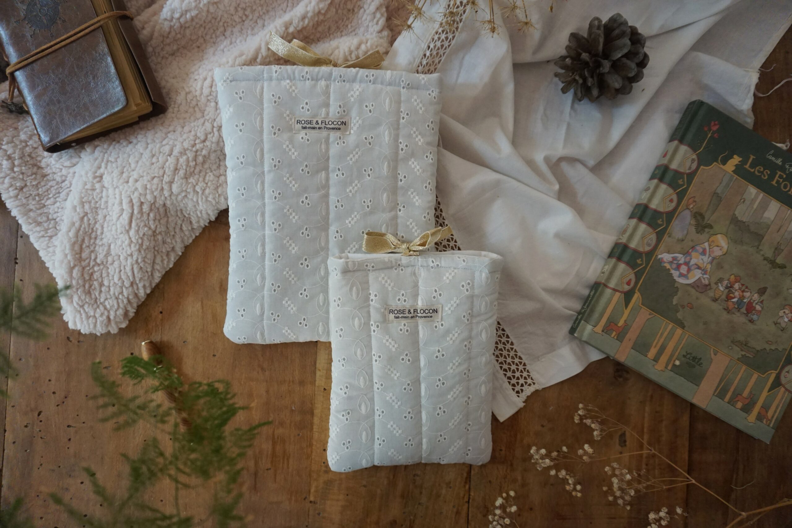 Entièrement cousue à la main dans mon atelier en Provence, chaque création est confectionnée dans un tissu certifié Oeko-Tex, respectueux à la fois de votre santé et de l’environnement. Avec son motif délicat de broderie blanche, elle séduit autant par son utilité que par son esthétique, idéale pour toutes celles et ceux qui aiment les beaux livres, les matières durables et l’artisanat local.