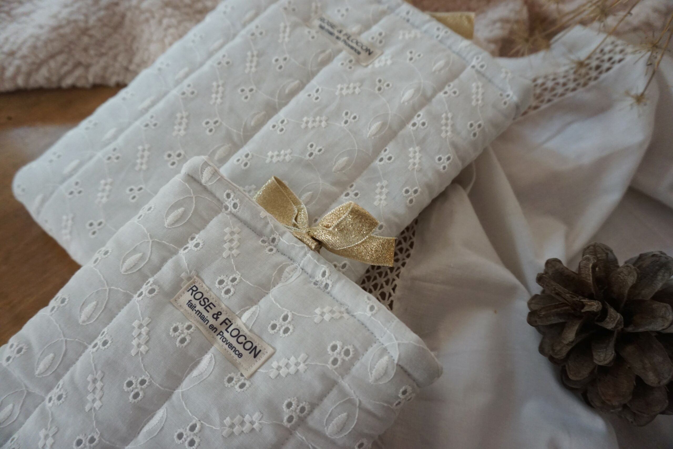 Son tissu en coton broderie anglaise et sa ouate Oeko-Tex assurent confort et durabilité.