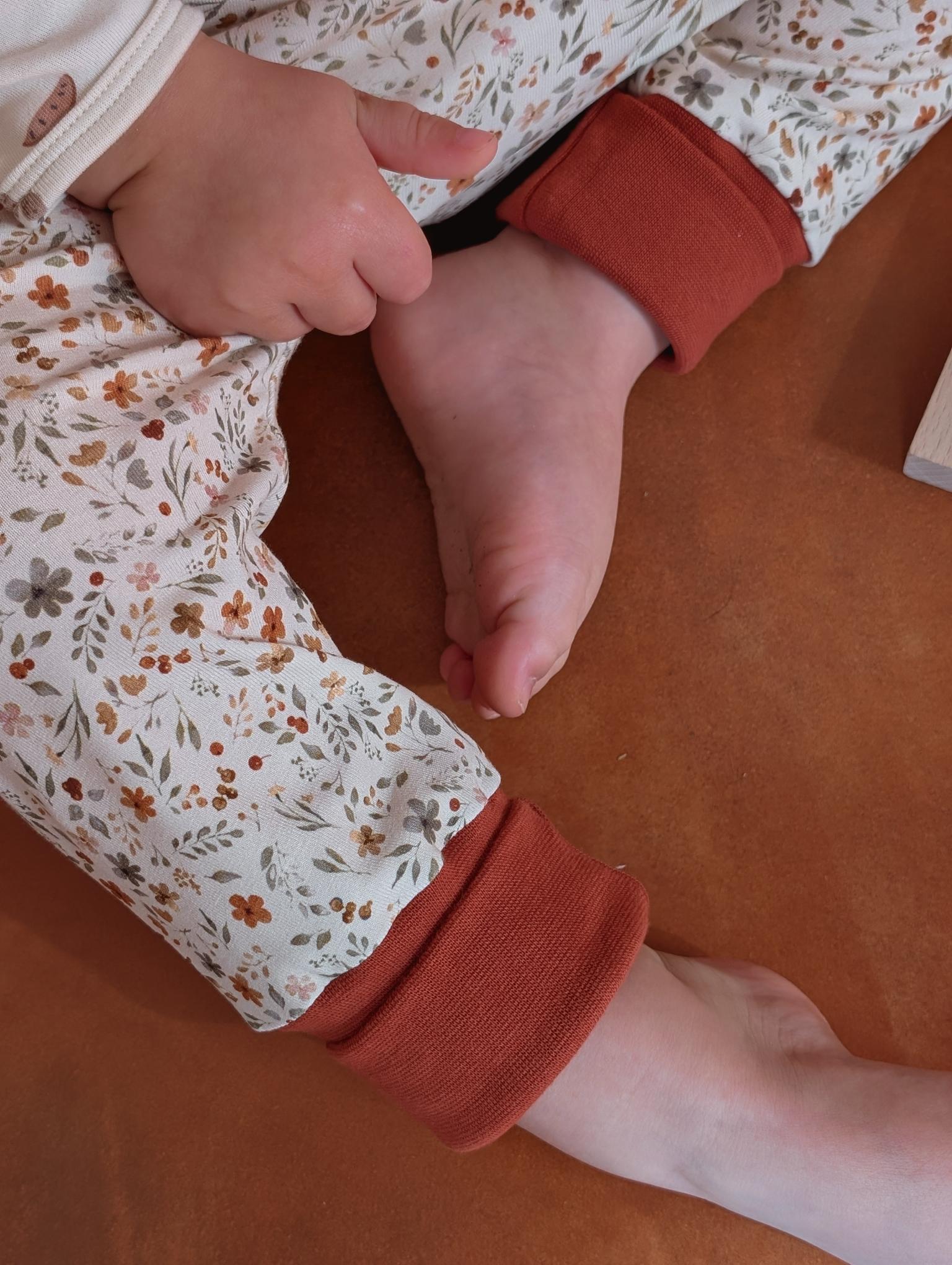 Ce sarouel bébé évolutif en jersey de coton combine liberté de mouvement et engagement responsable.