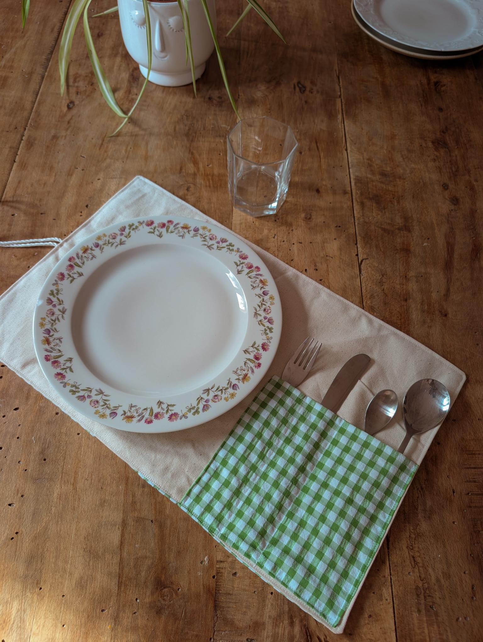 Son imprimé vichy vert tendre évoque la nature et la simplicité, et apporte une note joyeuse à vos repas, même dans un environnement professionnel.
